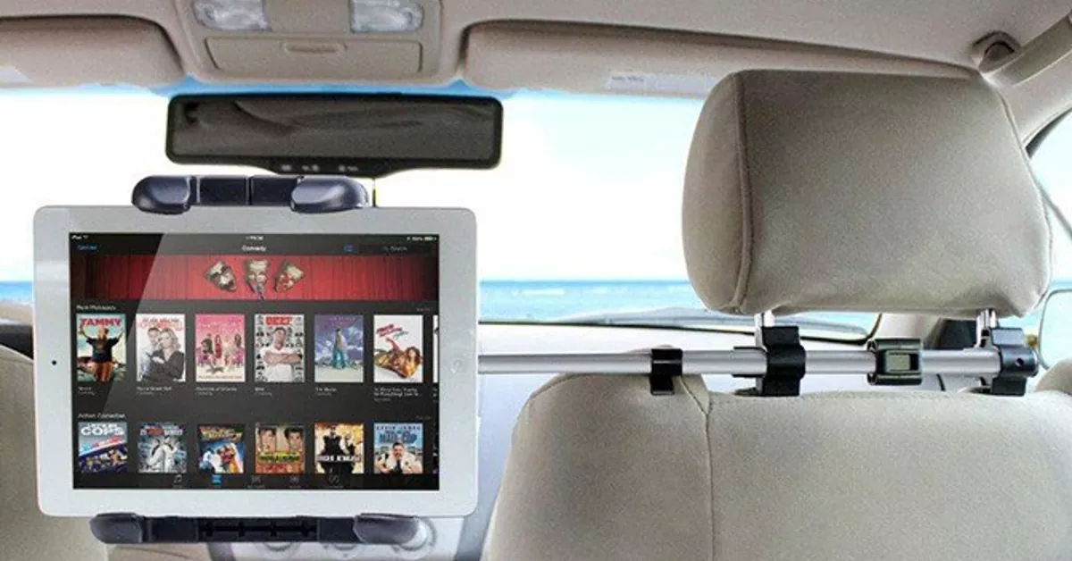 All 7 to 10-inch tablets are accommodated by this cradle car mount, which attaches to the headrest of your car. You can use the rigid extension arm to fit it comfortably between the back seats so that everyone can see.
